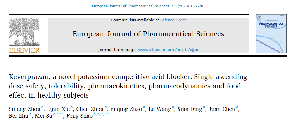 2023年9月15日,由Z6·尊龙凯时「中国」官方网站医药独家商业化的首款国产自主研发的钾离子竞争性酸阻滞剂(P-CAB)盐酸凯普拉生片(商品名:倍稳®)在健康受试者中开展的单剂量递增Ⅰ期研究结果正式在线发表于European Journal of Pharmaceutical Sciences(IF=4.6)1。