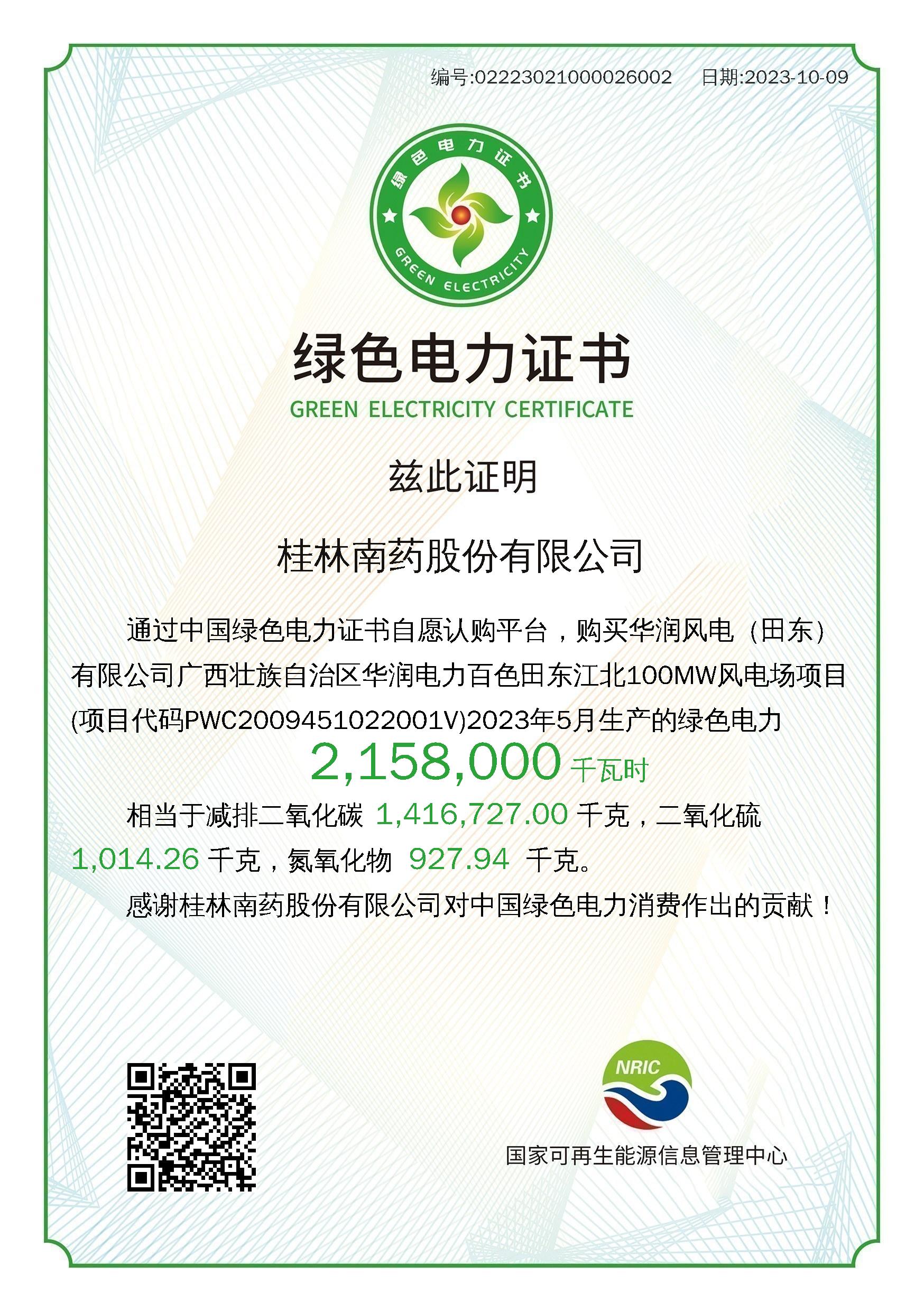 桂林南药绿电证书,通过购买绿电助力减碳