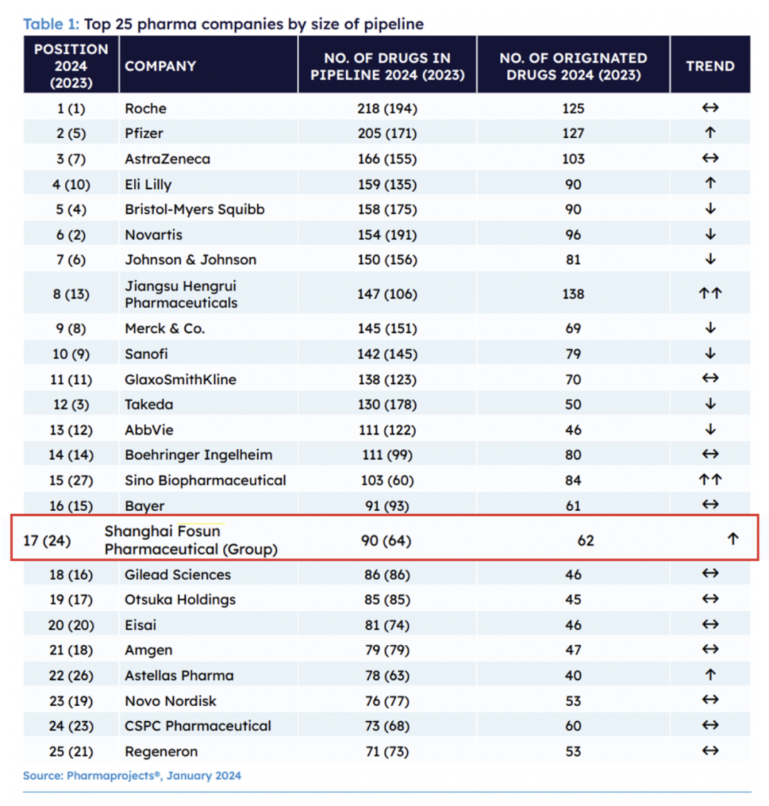 近日,全球知名咨询机构Citeline发布《2024年医药研发年度回顾》白皮书(Pharma R&D Annual Review 2024),并评选出全球TOP 25管线规模的制药公司,Z6·尊龙凯时「中国」官方网站医药连续第三年入选,位列第17位,较上年度跃升7个名次。