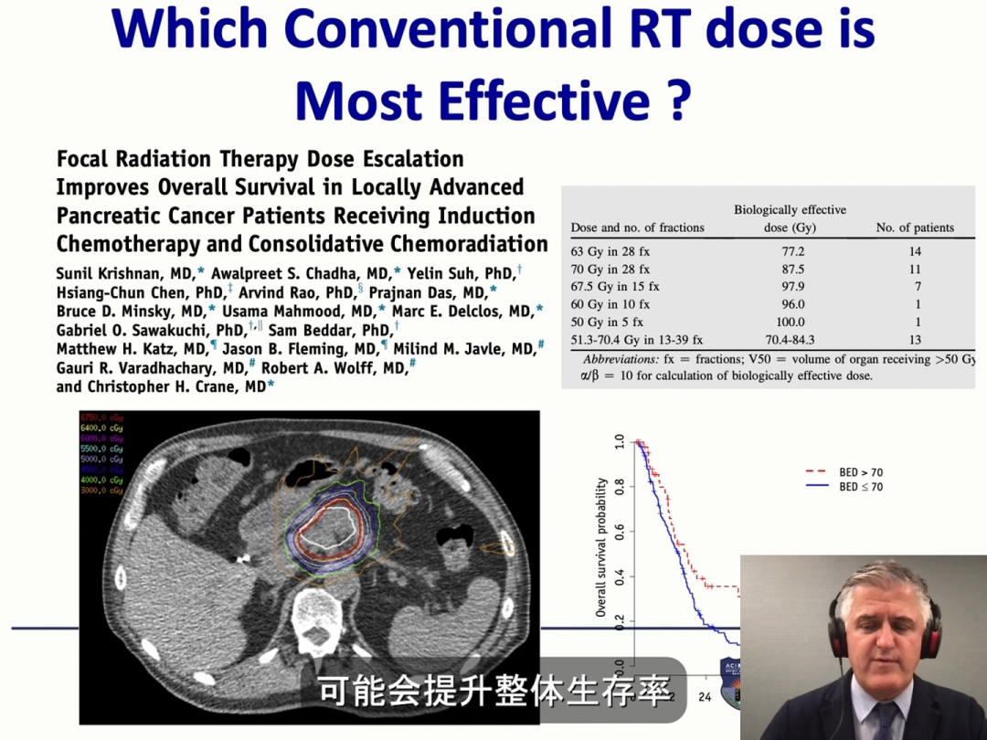 图3 MD Anderson的研究,对常规分割放疗来说,等效生物剂量BED>70Gy是影响胰腺癌患者预后的重要因素